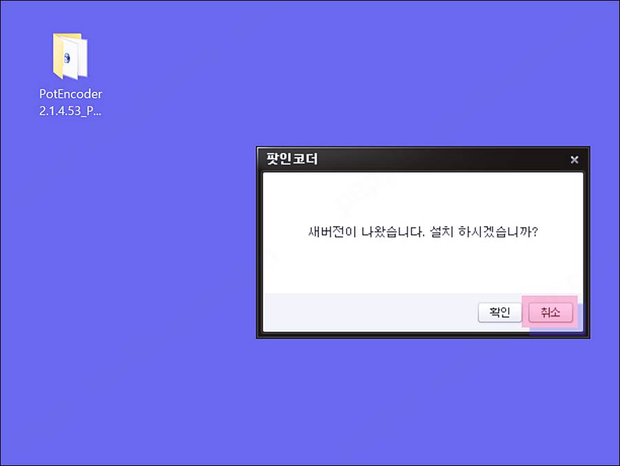 9. 그리고 새버전이 나왔다는 업데이트 알림 창이 뜨더라도 누르지 말고 취소를 선택합니다.
